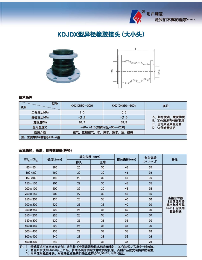 產品介紹 橡膠接頭又可稱為:可曲撓橡膠接頭、橡膠軟連接、軟接頭、柔性橡膠接頭、橡膠膨脹節、避震喉、減震器等,是一高彈性、高氣密性、耐介質和耐氣候性的管道連接件。