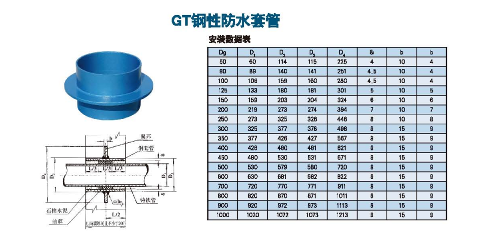 二型防水套管,適用于鑄鐵管,也適用于非金屬管,但應根據采用管材的壁厚厚度修正有關尺寸,翼環及鋼套管加工完成以后,在外壁均刷底漆一遍。二型防水套管處的混凝土墻厚,應不小于200mm,否則應使墻壁一邊或兩邊加厚,加厚部分的直徑,最小應該比翼環大200mm.