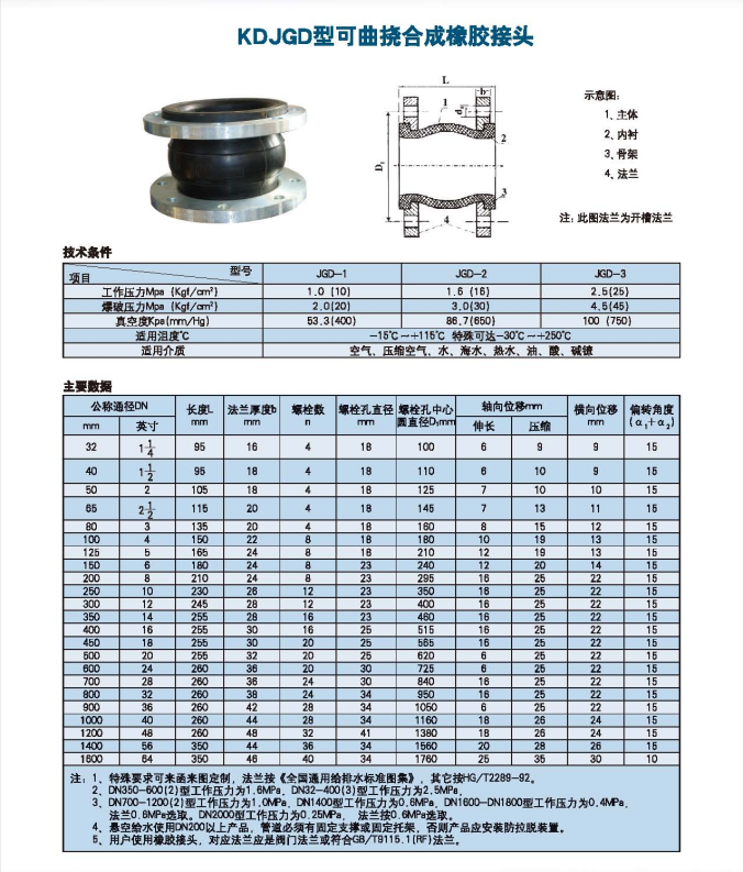 根據(jù)介質(zhì)不同所采用的橡膠材質(zhì)也不同,有天然膠、丁苯膠、丁基膠、丁腈膠、三元乙丙膠、氯丁膠、硅橡膠、氟橡膠等等。分別具有耐熱、耐酸、堿、耐腐蝕、耐磨、耐油等功能。 技術(shù)參數(shù)